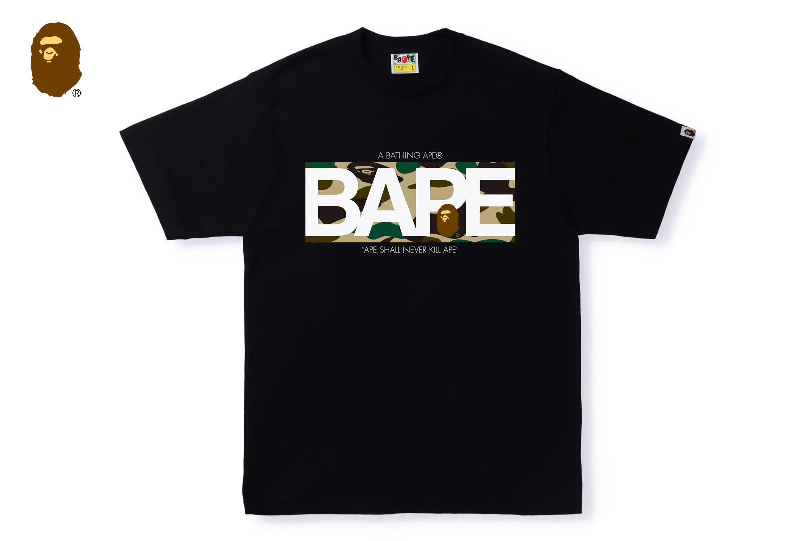 A short sleeve TEE made with an original cotton jersey body. square on the front1ST CAMOTheBAPEDesign and rubber print. Designed with a piss name attached to the left hem. Regular fit silhouette. Available in 4 colors and 6 sizes.