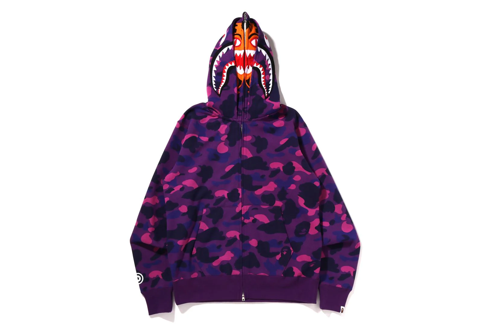 COLOR CAMO TIGER SHARK WIDE FULL ZIP DOUBLE HOODIE