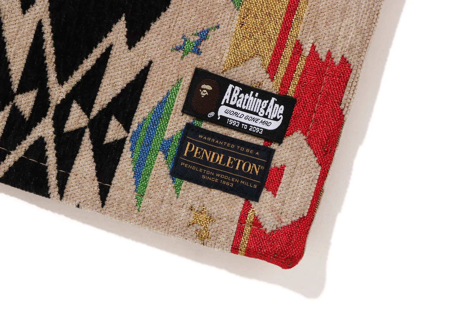 Jacquard weave native pattern rug M size. Based on PENDLETON's signature pattern "Tucson",APE HEADA textile rug with an original design incorporating the icons of Jacquard. Available in 1 color and 1 size. A collaboration model with PENDLETON, a long-established brand representing America.