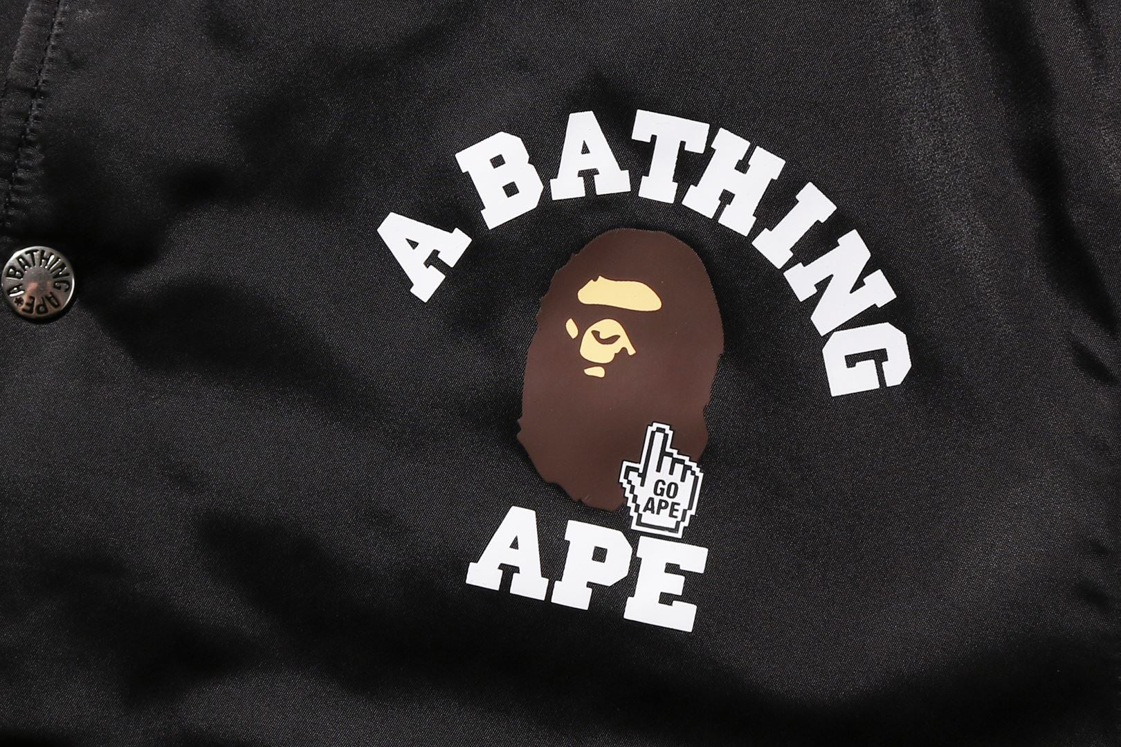 WEB STORELimited line ONLINE EXCLUSIVE. A padded varsity jacket made of nylon material. on the left chestBAPE Rubber print ONLINE COLLEGE. Under the back collarAPE HEADand “Welcome to BAPE® world!'' rubber print. Striped ribs on the collar, sleeves, and hem. Slash pockets on both sides of the body. Regular fit silhouette. Item limited to Japan.