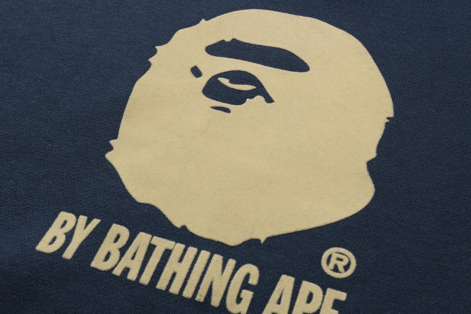 BY BATHING APE logo flocked print design.