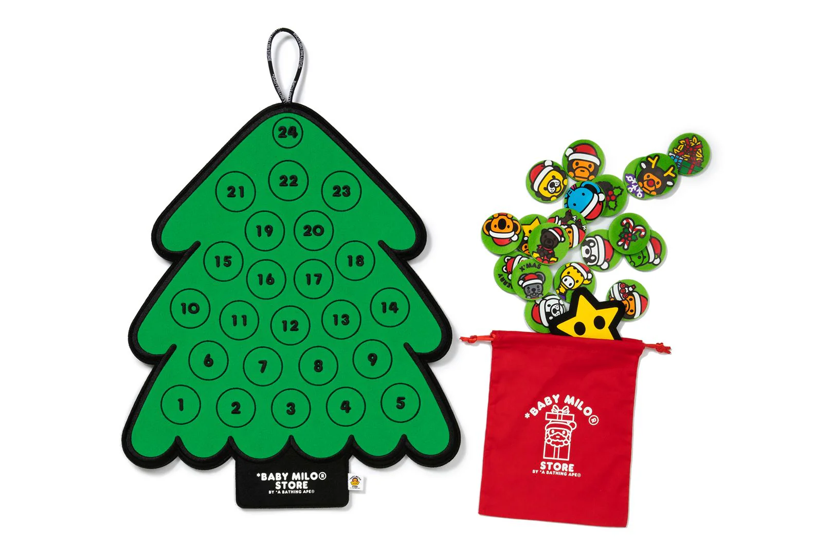 Advent calendar with fir tree design. A special item with BABY MILO and friends wearing Santa hats.
